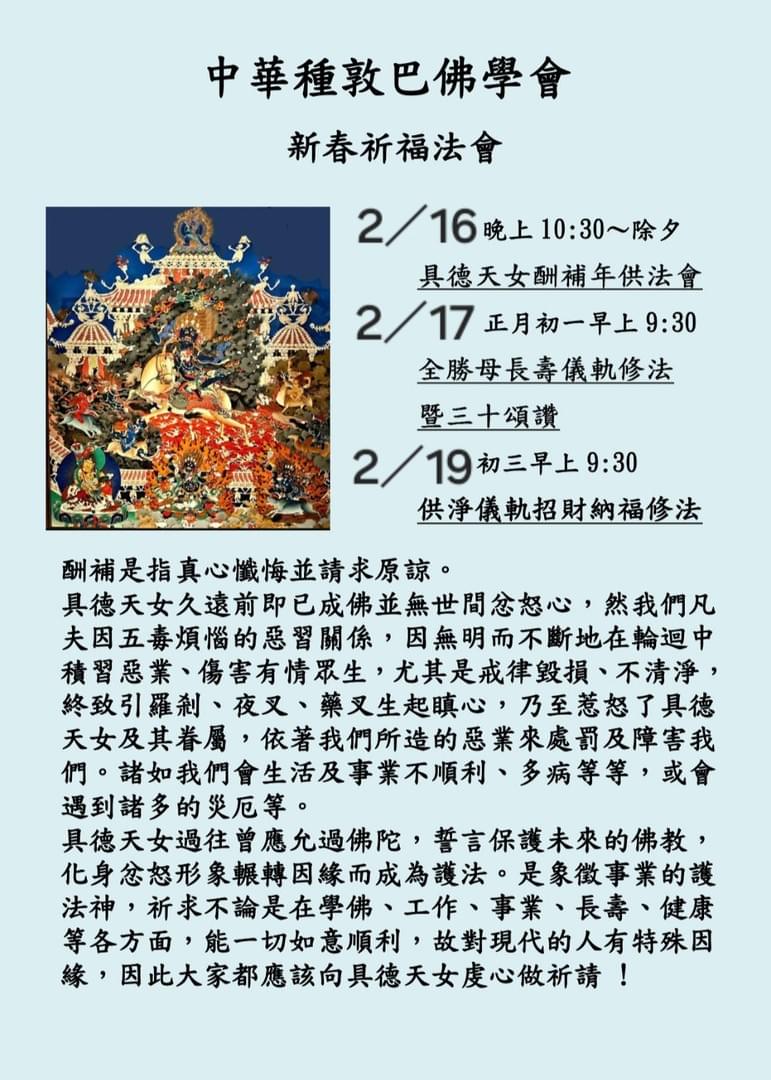 January 27, 2026January 21, 2026好消息! 這是今天2026年1月21號尼泊爾嘎檔寺及金鬘寺早餐、午餐及晚餐,由具壽者苡榭竹嘎(慧白度母)大猷釓士、苡榭慈主(慧長壽成就)大近善、苡榭巴燈(慧具德)大近善、苡榭迪吉(慧幸福)大...January 19, 2026January 19, 2026January 27, 2026January 19, 2026January 21, 2026好消息! 這是今天2026年1月21號尼泊爾嘎檔寺及金鬘寺早餐、午餐及晚餐,由具壽者苡榭竹嘎(慧白度母)大猷釓士、苡榭慈主(慧長壽成就)大近善、苡榭巴燈(慧具德)大近善、苡榭迪吉(慧幸福)大...January 19, 2026更多文章嘎檔派的特殊節日