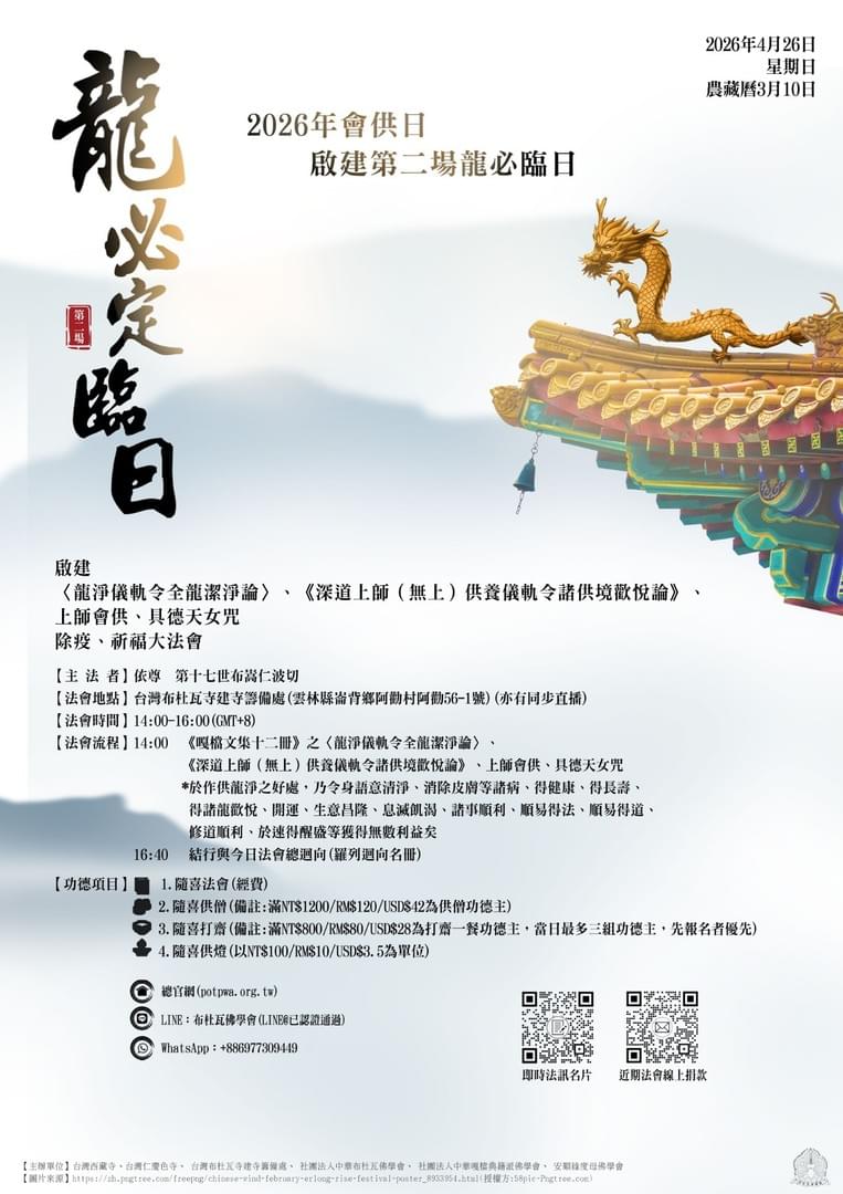 April 2, 2026您好 下方是布杜瓦佛學會4月份的大型法會 📆04/05週日,早上09:30~13:00 【標題:】🙏🪔清明孝親冥陽兩利供燈供佛超薦祈福大法會 【地點:】新北土城布杜...April 1, 2026March 31, 2026March 30, 2026April 2, 2026您好 下方是布杜瓦佛學會4月份的大型法會 📆04/05週日,早上09:30~13:00 【標題:】🙏🪔清明孝親冥陽兩利供燈供佛超薦祈福大法會 【地點:】新北土城布杜...March 31, 2026April 1, 2026March 30, 2026更多文章嘎檔派的特殊節日